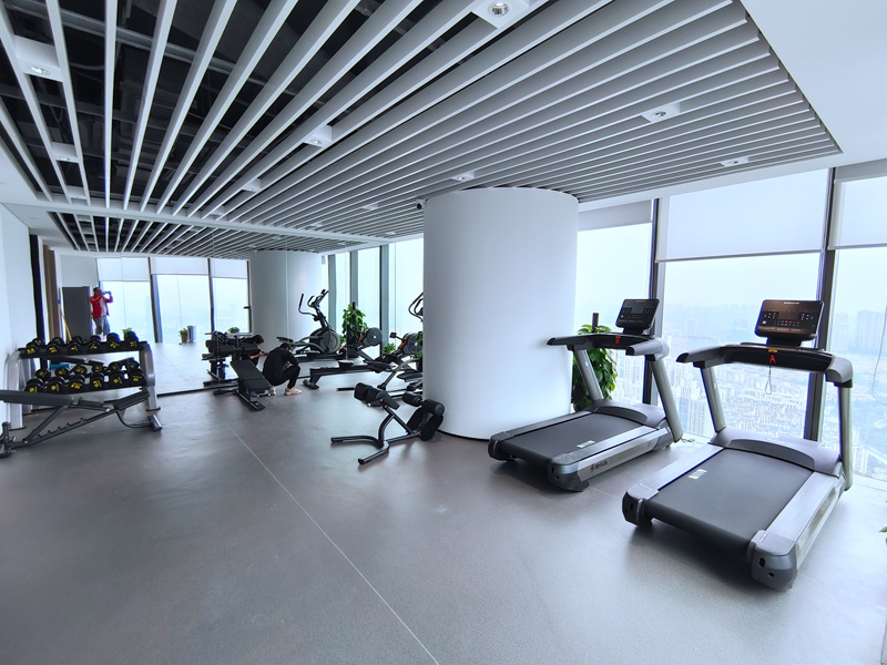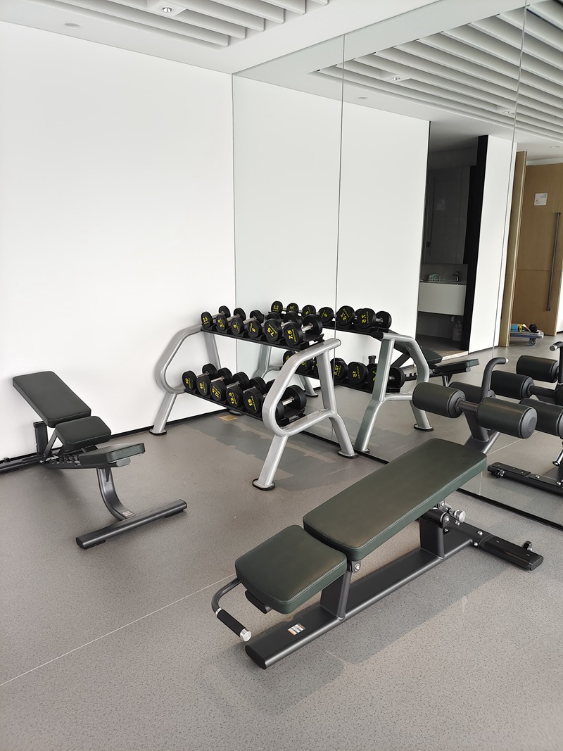 有氧器械配置了快盈VIIIV9智能跑步机,X5-E椭圆机,商用划船器SH-R8100。有氧运动可以增强心肺功能,提高身体代谢率,消耗体内多余脂肪。新V9商用跑步机具有坡度缓降功能,有助于肌肉与心血管训练,同时具有心率控制功能,随时监测心率,增强跑步体验感。X5-E椭圆机的生物力学设计,通过不受地面冲击的全身运动,能够进行高强度的有氧运动训练,更好的减轻疲劳感且不会对关节产生压力,保护膝关节的同时实现全身性的锻炼。