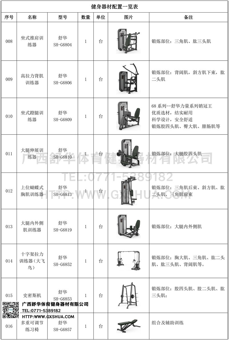 16.快盈VIII多重可调节练习椅SH-G6857*1台;