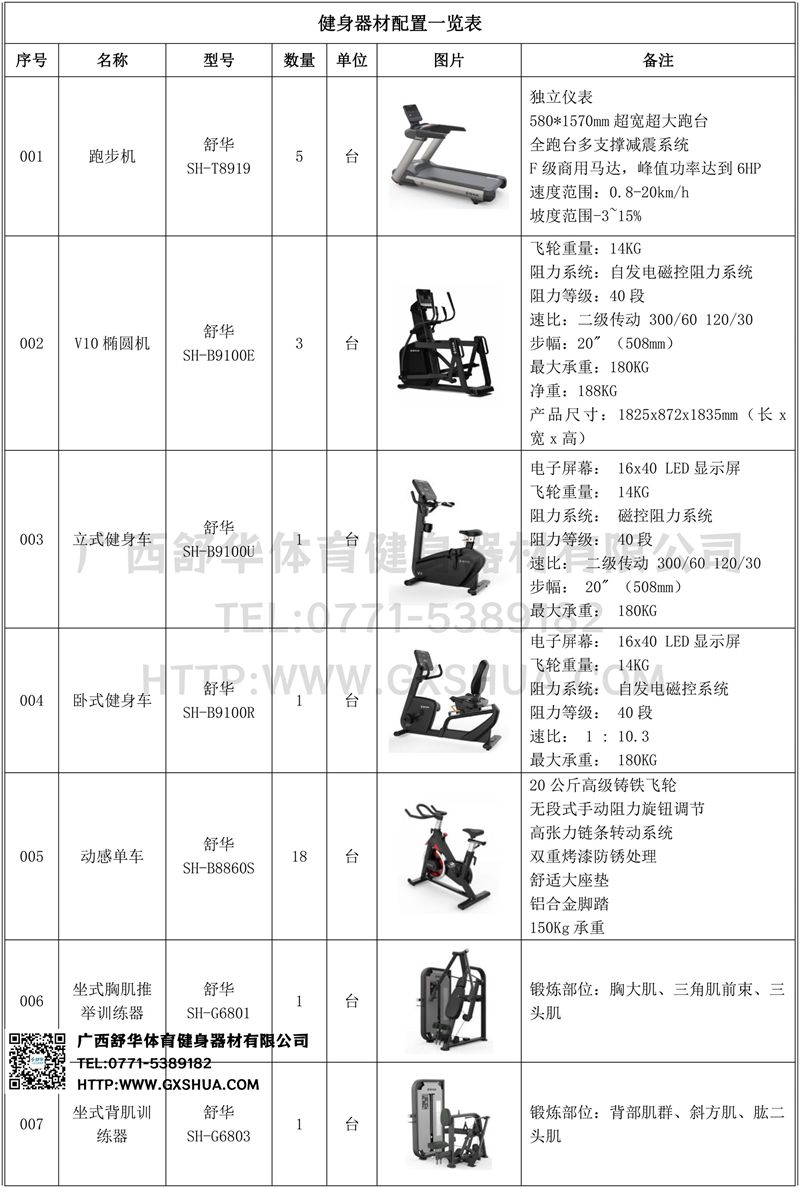 1.快盈VIIIV9跑步机SH-T8919*5台-独立仪表-简洁大气,全新外观设计,健康运动新选择;心率监测功能,可通过手握心率、无线心率带等不同方式实时采集心率数据;580*1570mm超宽超大跑台-跑感舒适,跑台整体安全稳定;全跑台多支撑减震平台,保证跑台超强支撑力,达到180kg支撑,满足专业健身房需求。
