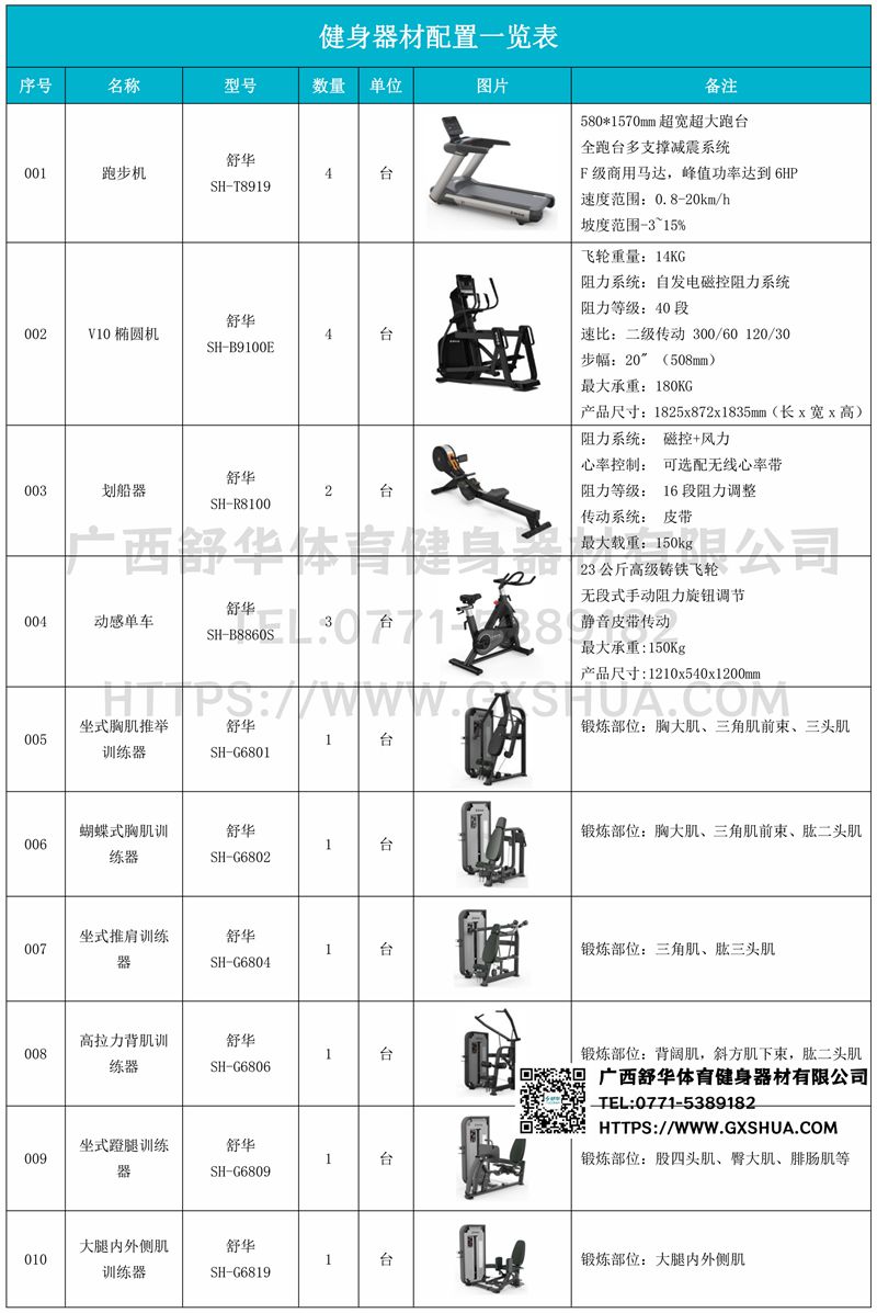 1.快盈VIIIV9跑步机SH-T8919*4台-580*1570mm超宽超大跑台-跑感舒适,跑台整体安全稳定;全跑台多支撑减震平台,保证跑台超强支撑力,达到180kg支撑,满足专业健身房需求。F级商用马达-超强马达,AC 3.0HP 交流,峰值功率达到6HP,F级商用品质。速度范围达到0.8-20km/h;V9跑步机可实现跑台扬升功能,坡度范围-3~15%,满足客户不同的锻炼需求。