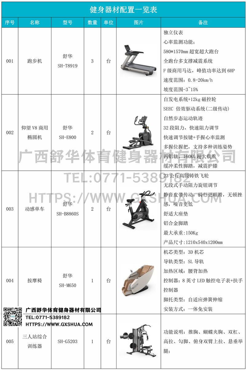 1.快盈VIIIV9跑步机SH-T8919*3台-F级商用马达-超强马达,AC 3.0HP 交流,峰值功率达到6HP,F级商用品质。速度范围达到0.8-20km/h;V9跑步机可实现跑台扬升功能,坡度范围-3~15%,满足客户不同的锻炼需求。